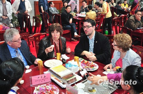 2月27日,來自德國(guó)的嘉賓正在首屆海峽兩岸閩南文化節(jié)活動(dòng)之一的“千人品茗”活動(dòng)上,與上千名來自海內(nèi)外嘉賓共同愉快感受茶藝!昂椭C海西·千人品茗”活動(dòng)共有兩場(chǎng),在泉州中國(guó)閩臺(tái)緣博物館內(nèi)舉行。 中新社發(fā) 張麗君 攝