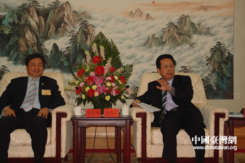 4月27日下午,中國(guó)和平統(tǒng)一促進(jìn)會(huì)與臺(tái)灣“一國(guó)兩制”研究協(xié)會(huì)訪問(wèn)團(tuán)在京座談,全國(guó)人大常委會(huì)副委員長(zhǎng)、中國(guó)和平統(tǒng)一促進(jìn)會(huì)副會(huì)長(zhǎng)陳昌智(右)出席并發(fā)表講話。(中國(guó)臺(tái)灣網(wǎng) 楊麗 攝)