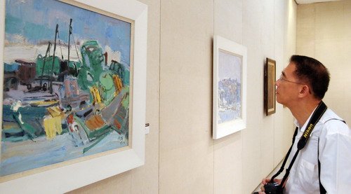 “五一”期間,第二屆海峽兩岸美術作品交流展廈門作品展舉行,展出了中國畫、油畫、版畫等100多幅作品。 (新華社記者沈汝發(fā) 攝)