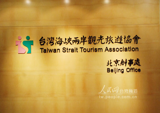 “臺(tái)灣海峽兩岸觀光旅游協(xié)會(huì)北京辦事處”幾個(gè)字在燈光的照耀下,顯得格外顯眼。(攝影:人民網(wǎng)記者 鄧志慧)
