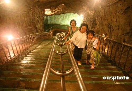 臺灣金門古崗翟山小艇坑道,是軍方釋出交由金門公園管理處接管開放的第一座觀光坑道,不但鬼斧神工,且有冬暖夏涼的特性,是夏日游客的最愛。 中新社發 CNA 攝
