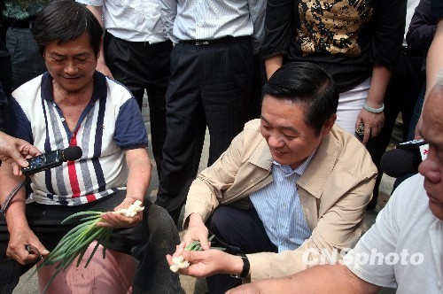 劉奇葆還來到老人們耕種的菜地,恰遇一位村里的聾啞老人在勞動,劉奇葆連忙握手問候。當得知這位聾啞老人因年齡未到還不能領取福利金,需經常自己打拼賺錢時,劉奇葆連連向他豎起大拇指。