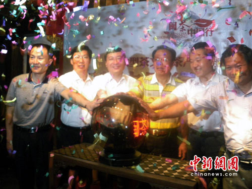 13日晚,“閩茶中國(guó)行”暨首站臺(tái)灣行啟動(dòng)儀式在福州舉行。海峽茶業(yè)交流協(xié)會(huì)會(huì)長(zhǎng)張家坤、中共福建省委宣傳部副部長(zhǎng)蔡小偉等領(lǐng)導(dǎo)共同按下了啟動(dòng)球。 中新網(wǎng)發(fā) 張羽 攝