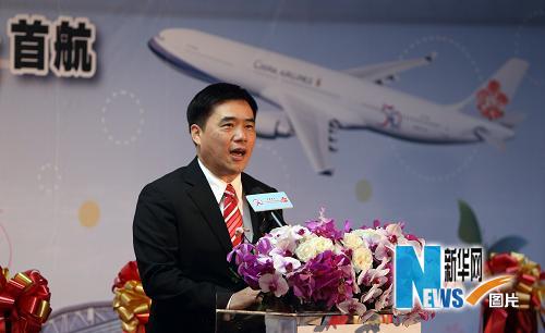 6月14日,臺北市市長郝龍斌在首航儀式上講話。