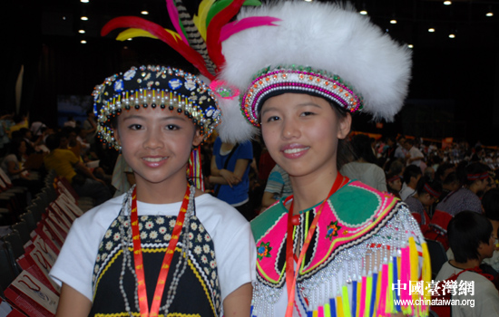 臺(tái)灣布農(nóng)族群小朋友吳婷萱和阿美族群小朋友田恬。(中國(guó)臺(tái)灣網(wǎng) 高斯斯 攝)