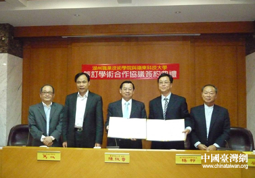 湖州職業(yè)技術(shù)學(xué)院與臺灣嶺東科技大學(xué)現(xiàn)場(圖片來源:湖州市臺辦)