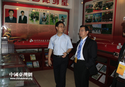 臺灣嶺東科技大學(xué)考察團參觀湖州職業(yè)技術(shù)學(xué)院創(chuàng)業(yè)園陳列室(圖片來源:湖州市臺辦)