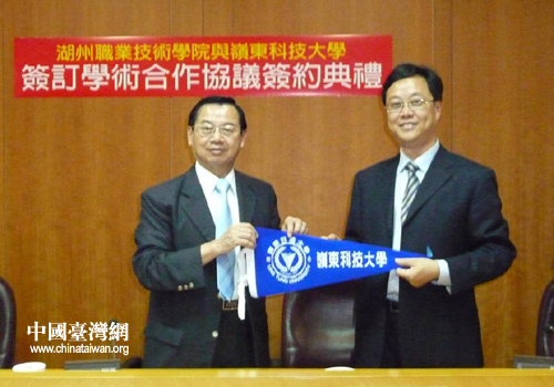 中國臺灣網(wǎng)7月2日湖州消息 日前,臺灣嶺東科技大學(xué)校長陳振貴與湖州職業(yè)技術(shù)學(xué)院院長胡世明簽訂合作協(xié)議,兩校正式結(jié)為姊妹學(xué)校。湖州職業(yè)技術(shù)學(xué)院的22名女生應(yīng)陳校長的邀請,將于2010年9月13日至2011年1月14日期間赴臺灣進行交流學(xué)習(xí)。期間,將在臺灣嶺東科技大學(xué)選修18-20學(xué)分的課程進行學(xué)習(xí)。