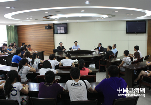 嶺東科技大學(xué)考察團與湖州職業(yè)技術(shù)學(xué)院學(xué)生進行座談(圖片來源:湖州市臺辦)