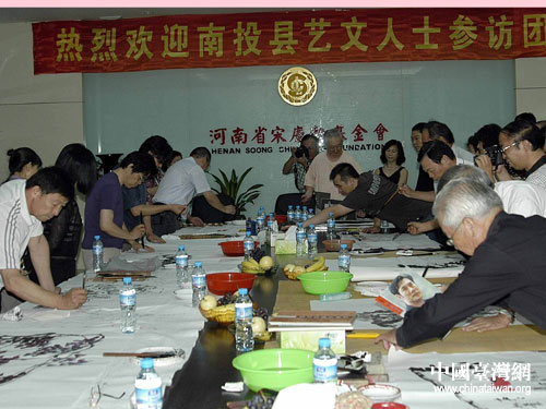 中國(guó)臺(tái)灣網(wǎng)8月4日鄭州消息 由宋慶齡基金會(huì)策劃組織的臺(tái)灣南投與河南書(shū)畫(huà)名家藝術(shù)雅集活動(dòng),日前分別在洛陽(yáng)市華陽(yáng)廣場(chǎng)國(guó)際大飯店和鄭州河南省宋慶齡基金會(huì)隆重舉行。據(jù)悉,這是臺(tái)灣南投與河南書(shū)畫(huà)名家的首次聯(lián)誼活動(dòng)。
