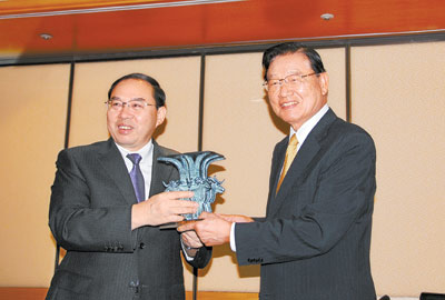 8日中午,;鶗麻L江丙坤在臺北會見了率團(tuán)正在參加“2010年臺灣湖南周”活動的中共湖南省委副書記梅克保一行。