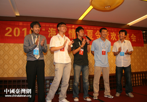 中國臺灣網8月13日天津消息 8月12日,由天津市臺辦、臺灣中國統一聯盟共同主辦,天津大學承辦的2010“海河情”夏令營在天津市舉行開營儀式,津臺兩地11所大學30余名師生歡聚一堂。天津市臺辦副主任郭慧勤出席歡迎宴會并致辭。