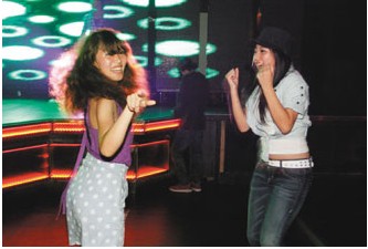 延安大學(xué)黃曉琳(左)和邱妮,到夜店,體驗(yàn)臺(tái)灣夜生活。圖片來(lái)源:臺(tái)灣《聯(lián)合報(bào)》