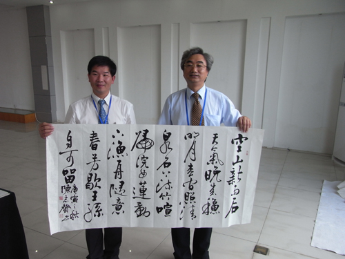海峽兩岸分隔61年,但共同的文化卻如同永恒的鵲橋,讓兩岸文化人的心靈相通。在筆會(huì)上,書畫家們毫無(wú)隔閡,即席揮毫潑墨,一起完成了一幅幅精美書畫。
