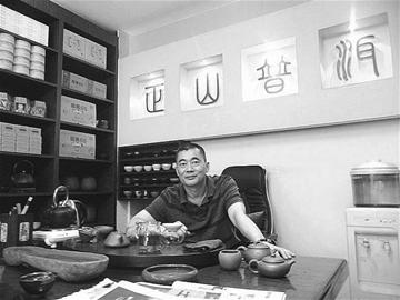 在廈門文灶附近,有一家專門經營云南普洱茶的正山茶業。店面不大,里面卻是干凈整潔,擺設考究。主人桌子上的茶壺、茶杯,古香古色;櫥柜上的茶葉包裝,有的像磚,有的類餅,形狀各異;墻上貼的書法,更讓這間小店充滿濃郁的文化氣息。正山茶業的老板是臺灣云林人吳明憲,雖然出生在盛產高山茶的臺灣,但他最愛的還是普洱茶。更因為普洱茶,他在廈門找到了自己的另一半。