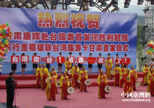 中國臺灣網8月30日蘭州消息 8月30日,由甘肅康輝國際旅行社組織的甘肅居民赴臺旅游暨農行金穗銀聯臺灣旅游卡甘肅首發儀式在黃河岸邊的蘭州水車博覽園舉行。