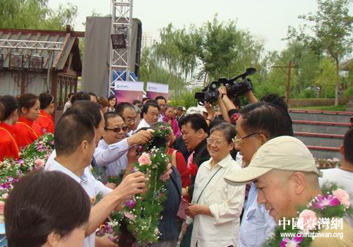 甘肅省各級領導為甘肅首批赴臺游客佩戴花籃 (圖片來源:甘肅省臺辦)