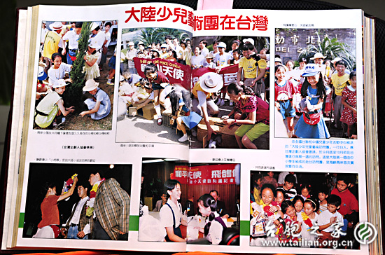 第一屆大陸小天使赴臺時兩岸媒體的相關(guān)報道。上圖為臺灣媒體部分報道的剪報,下圖為《臺聲雜志》的圖片報道。(全國臺聯(lián)文宣部提供圖片)