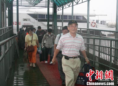 隨同“泉州輪”抵達石井碼頭的23名臺胞在泉州邊檢官兵的幫助下,順利登陸。