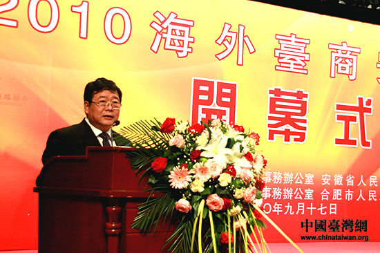 長期以來,安徽省委、省政府帶領(lǐng)全省人民團(tuán)結(jié)奮斗,取得了經(jīng)濟(jì)社會發(fā)展的重大成就。近年,安徽突出發(fā)展戰(zhàn)略重點(diǎn),全面推進(jìn)合蕪蚌自主創(chuàng)新綜合配套改革試驗區(qū)和皖江城市帶承接產(chǎn)業(yè)轉(zhuǎn)移示范區(qū)建設(shè),著力推動節(jié)能環(huán)保、電子信息、光伏等新興產(chǎn)業(yè),加快承接長三角產(chǎn)業(yè)組團(tuán)式轉(zhuǎn)移和產(chǎn)業(yè)鏈整體轉(zhuǎn)移,在中部崛起戰(zhàn)略中發(fā)揮著獨(dú)特作用。同時,安徽省委、省政府更加重視皖臺經(jīng)濟(jì)交流合作,不斷探索皖臺合作的新思路、新舉措,為兩岸關(guān)系和平發(fā)展作出了重要貢獻(xiàn)。相信隨著經(jīng)濟(jì)發(fā)展方式的轉(zhuǎn)變和重點(diǎn)區(qū)域帶動戰(zhàn)略的實施,安徽將在兩岸新一輪經(jīng)濟(jì)合作中扮演更加重要的角色,成為臺商“西移北上”投資發(fā)展的重要聚集區(qū)。國務(wù)院臺辦支持廣大臺商到安徽投資興業(yè),開展交流合作。我們衷心祝愿皖臺交流合作取得新的更大成就,為兩岸關(guān)系和平發(fā)展作出新的更大貢獻(xiàn)。