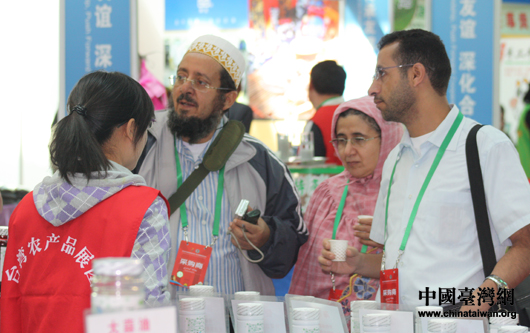 阿拉伯客商參觀臺(tái)灣商品展,品嘗臺(tái)灣特產(chǎn)。 (中國(guó)臺(tái)灣網(wǎng) 王偉 攝)