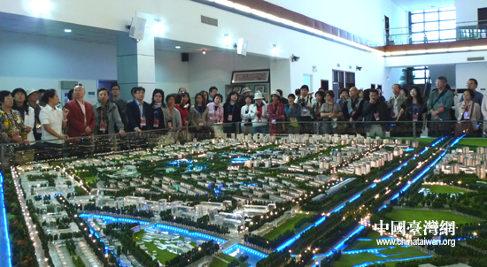 參訪團成員27日在參訪天津東麗區華明新市鎮規劃,感受中國新農村的變化。(中國臺灣網 李徽 攝)