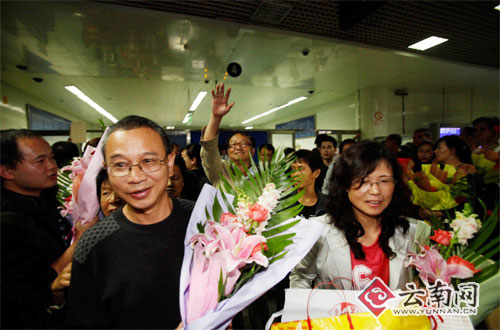 在云南省國際旅行社拉起的“歡迎回家”的大幅標語下,在鮮花簇擁、鄉音問候下,曾受困于臺灣蘇花公路113到114公里處的48名云南游客昨晚23時20分乘坐由臺北飛往昆明的3U8958次航班,順利抵達昆明機場。據臺灣觀光部門統計,在臺灣遭遇塌方事故的大陸游客,除20人尚未尋獲,其余人員均已脫困,其中164人已離開臺灣返回大陸,另外85名游客將推遲離臺以繼續走完行程。