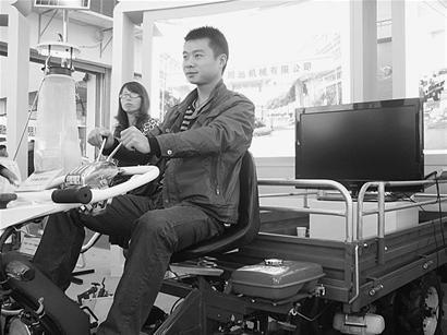 在臺灣特色館,一架特色機(jī)器吸引了許多人參觀。這款在臺灣稱為“爬山虎”的田園搬運(yùn)管理機(jī),特色在于能夠像老虎一樣,自由地穿行在山路間,據(jù)介紹,它的秘訣就是“人字形齒輪狀”的輪胎,可以防止打滑、陷入泥濘中。它載重500公斤,只要是25度到45度之間的坡度,都可以成功地翻越。