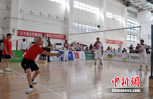 11日,福建省第八屆老年人體育健身大會各項目交流展示活動繼續在“媽祖故鄉”福建莆田舉行,來自閩臺兩地的1400多名老年隊員相聚在一起,共同分享老年健身活動的快樂。