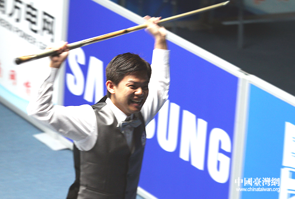 果然,短暫的調整情緒之后郭柏成干脆利落的推出一桿,黑八應聲入袋。場邊觀眾響起熱烈喝彩聲,激動的新科冠軍高舉球桿歡呼著蹦上觀眾席與親友緊緊擁抱。