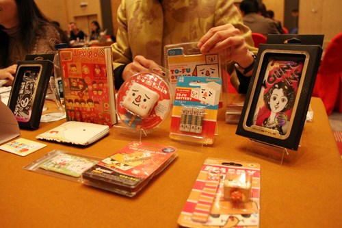 17日上午,兩岸城市文化創意產業商機洽談會(下稱洽談會)在京召開,共有18家臺灣企業參展,30多家大陸企業參加洽談。來自臺灣的創意產品在洽談會上紛紛亮相,瓷器、玩偶、婚慶用品……件件精致、新奇,處處透露著商機。