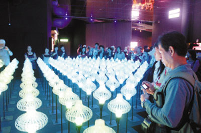 花博會(huì)夢(mèng)想館里的機(jī)械花流光溢彩。