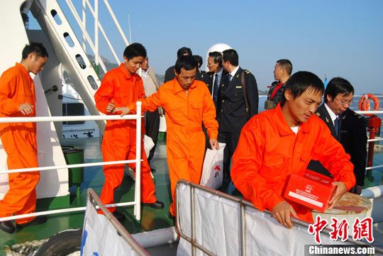 12月5日下午,12名獲救船員成功抵達(dá)福建寧德城澳碼頭。中新社發(fā) 李松 攝