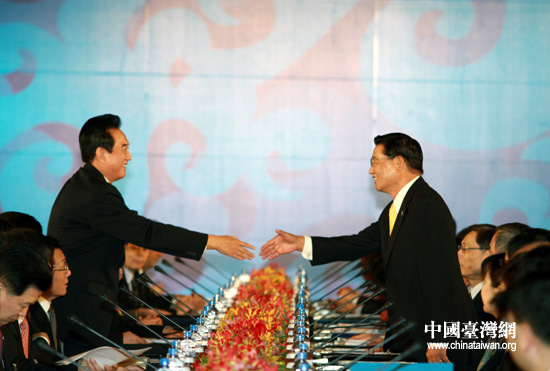 中國臺灣網(wǎng)12月21日臺北消息 兩岸兩會領(lǐng)導(dǎo)人第六次會談21日上午9時在臺北圓山飯店舉行,海協(xié)會會長陳云林與海基會董事長江丙坤在臺北再度握手。(特派記者 鐘寶華)