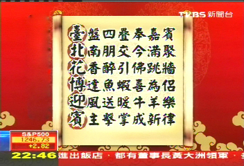 中國臺灣網12月22日消息 據臺灣TVBS電視臺報道,兩岸兩會領導人第六次會談21日在臺北舉行,20日晚海基會在臺北圓山飯店宴請包括海協會會長陳云林等海協會相關人士。晚宴準備的菜色都是具有臺灣特色的佳肴,最特別的是由12道菜名組成一首藏頭詩,將“臺北花博迎賓”的字眼鑲嵌在里面。