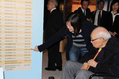 陳鳴錚定定地看著展板,情不自禁身體前傾,頭上白發微微顫動。97歲的老人家,應該看不清那些密密麻麻的文字,但他知道那是他熟悉的名字,因為他自己也是其中之一。