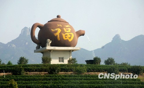 6月13日,一巨型茶壺樹立在位于福建漳州的“世界茶王”臺商李瑞河茶園內。有“世界茶王”之稱的臺商李瑞河是臺灣南投人,20世紀90年代初來到漳浦創辦天福茶莊,經營兩岸茶業,目前在世界各地開有1008家直營店。 中新社發 王東明 攝