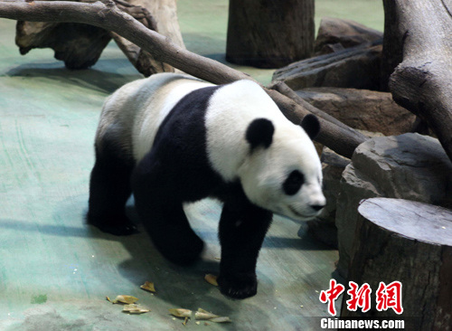圖為甫接受自然交配體驗及人工受精的母大熊貓“圓圓”,依然活潑好動。 董會峰 攝