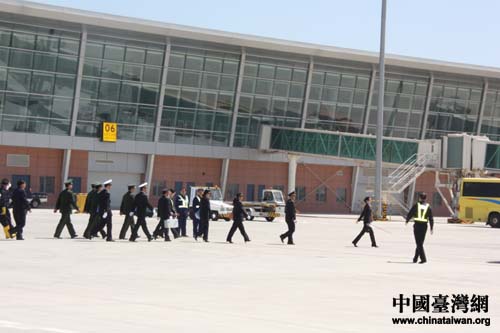 海關、檢驗檢疫、邊防檢查、民航等相關部門趕在20分鐘內完成人員、動物、食料各項通關手續。(中國臺灣網 劉海偉 攝)