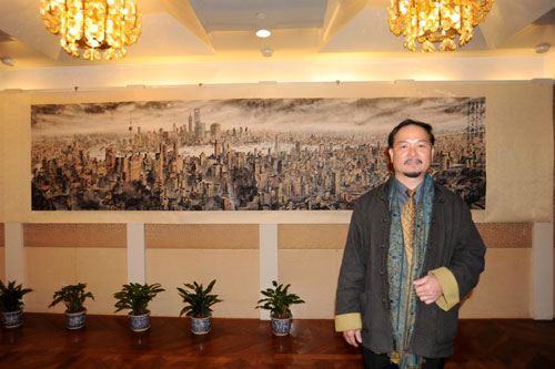 許文融的水墨長卷《臺灣風物圖》高1.8米、長320米,是許文融在19年前、時年28歲及以后數次游歷臺灣山川河湖、城鄉鎮村基礎上,于1992年至1996年間,歷時4年將臺灣的山水人文風物濃縮于320米長的畫卷之中,是當時世界最長的中國水墨巨畫。