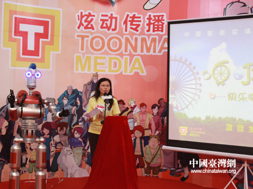 上海炫動傳播股份有限公司副總經(jīng)理魚潔女士在發(fā)布會上發(fā)言(中國臺灣網(wǎng) 李丹 攝)