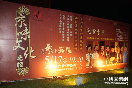 中國臺灣網5月18日嘉義消息 “演出真的很贊啦,笑的我們快要掉眼淚了”。昨天晚上,嘉義縣表演藝術中心迎來了“第十一屆京味文化——臺灣嘉義親情之旅”一行的表演藝術家、工藝美術大師們。