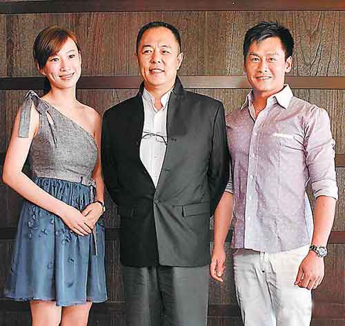 張鐵林(中)來臺,沈世朋(右)和妻子李新做陪。圖片來自網絡