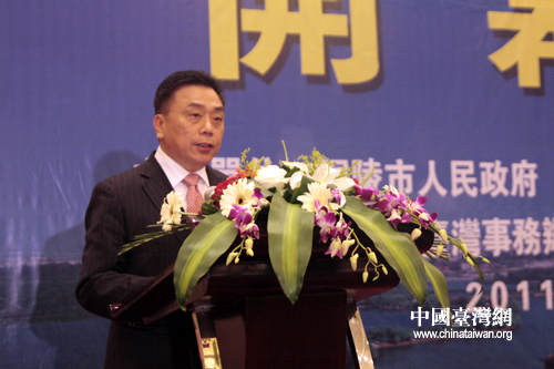 臺企聯(lián)會長郭山輝在臺企聯(lián)臺資企業(yè)產(chǎn)業(yè)轉(zhuǎn)移示范區(qū)對接交流會上發(fā)言。(中國臺灣網(wǎng) 馬迪 攝)