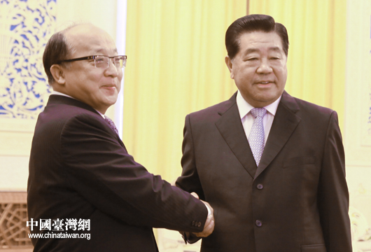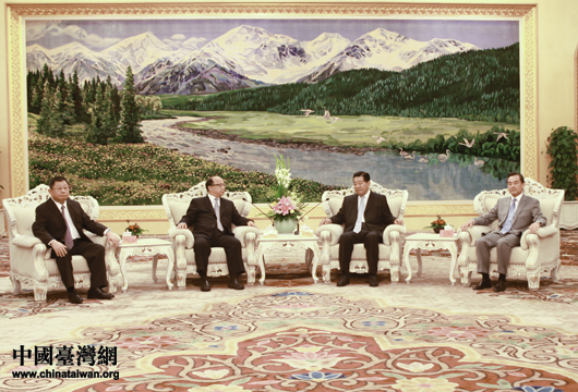 中國臺灣網7月7日消息 7日下午,中共中央政治局常委、全國政協主席賈慶林在人民大會堂會見了來京參訪的臺灣臺中市市長胡志強一行。(中國臺灣網 陳佳慧)
