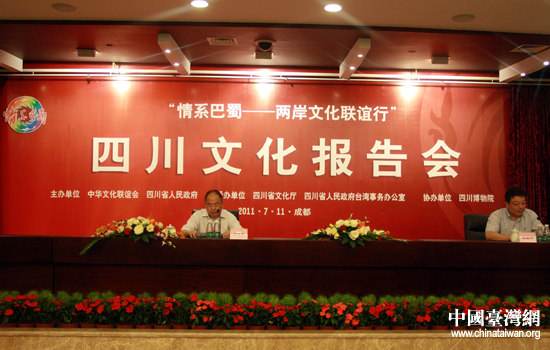 中國臺灣網7月11日成都消息 11日上午,由中華文化聯誼會和四川省人民政府主辦的四川省文化報告會在四川省博物院召開。由臺灣前財團法人海峽交流基金會副董事長焦仁和任團長的臺灣嘉賓團共95人出席報告會。四川省文化廳廳長鄭曉幸作了以“巴蜀文化的百年發展與創新”為主題的報告。