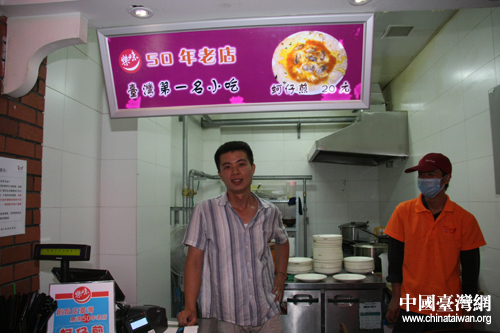 在臺灣50年歷史之久的蚵仔煎老店在前門臺灣街開鋪營業(yè)。(中國臺灣網(wǎng) 于斯文 攝)