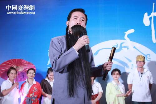臺(tái)灣嘉賓團(tuán)團(tuán)長(zhǎng)焦仁和興致勃勃地唱起了京劇(中國(guó)臺(tái)灣網(wǎng) 趙輝 攝)