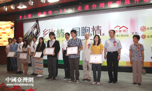 2011年7月20日,“鄉土情 同胞情—2011走進臺灣攝影展” 揭幕剪彩儀式上,獲獎的六位臺灣同學取得了證書。(中國臺灣網 楊永青 攝)