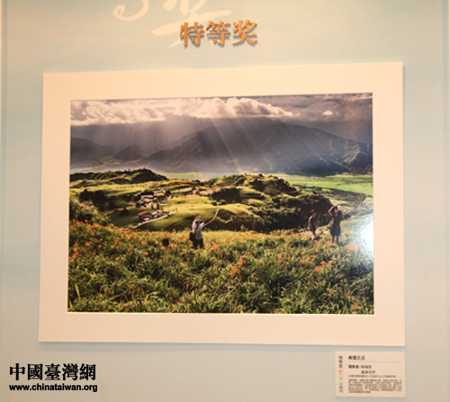 臺灣慈濟大學的陳福堂同學憑借這幅《希望之丘》獲得了特等獎(中國臺灣網 楊永青 攝)